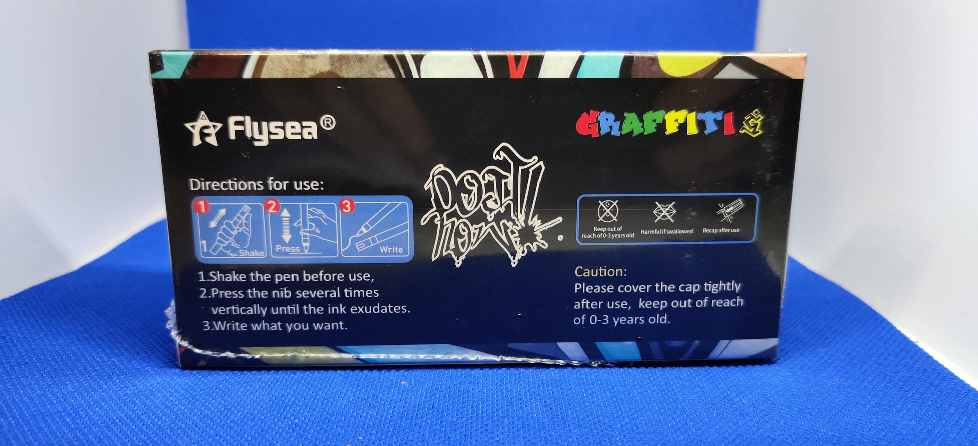Ce coffret contient 12 marqueurs de peinture acrylique Flysea (gamme « Paint Markers Graffiti ») avec pointe extra-fine (0,7 mm) pour un tracé précis. Chaque stylo est rempli d’une encre acrylique pigmentée à base d’eau, conçue pour offrir un fort pouvoir couvrant tout en restant permanente après séchage. La pointe fine assure un contrôle parfait du dessin et du remplissage, idéal pour les contours et les détails fins.